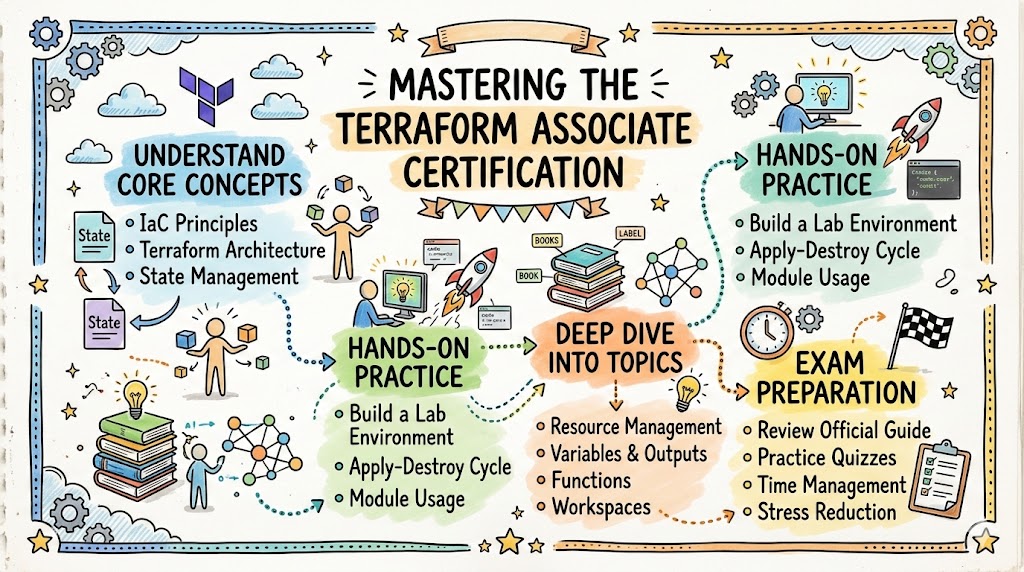 The HashiCorp Certified: Terraform Associate is an entry-to-mid-level certification that validates your ability to use Terraform for Infrastructure as Code across cloud and on-prem environments. It covers both conceptual understanding and hands-on skills needed to write, run, and manage Terraform configurations safely.